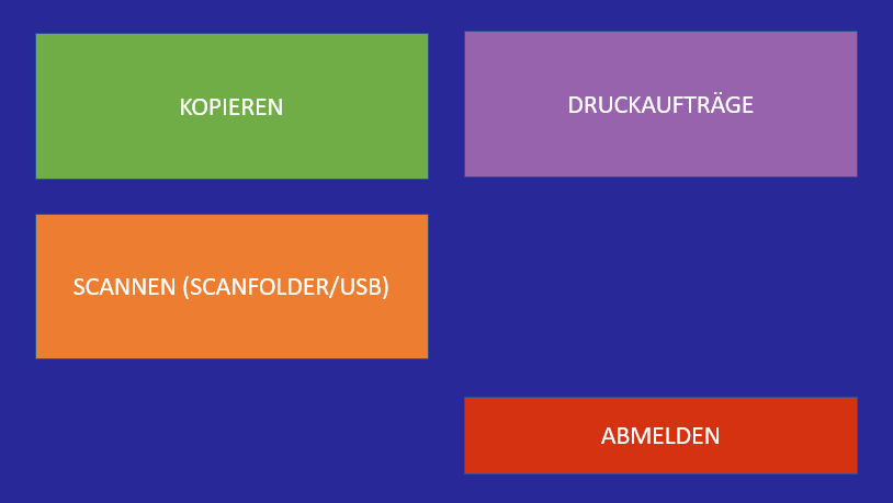 - Ausdruck vom eigenen USB-Stick am Gerät: Zu finden nach der Anmeldung am Gerät auf die zweite Seite unter dem Button „Drucken“.